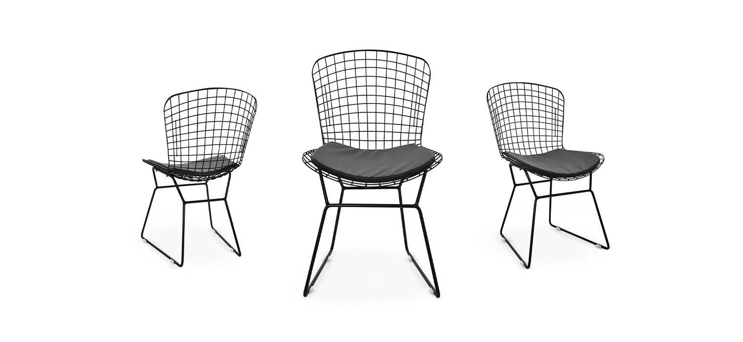 La Bertoia ll es una silla pensada para espacios que buscan una combinación de ligereza visual, resistencia estructural y una presencia contemporánea. Combina una estructura en varillas de metal cuidadosamente diseñadas con con un cojín tapizado en cuero sintético que eleva la experiencia de confort. Su silueta abierta convierte cada detalle en un elemento de diseño, ideal para espacios modernos que buscan carácter sin perder funcionalidad.