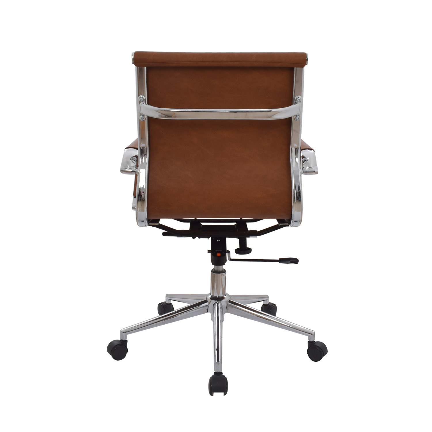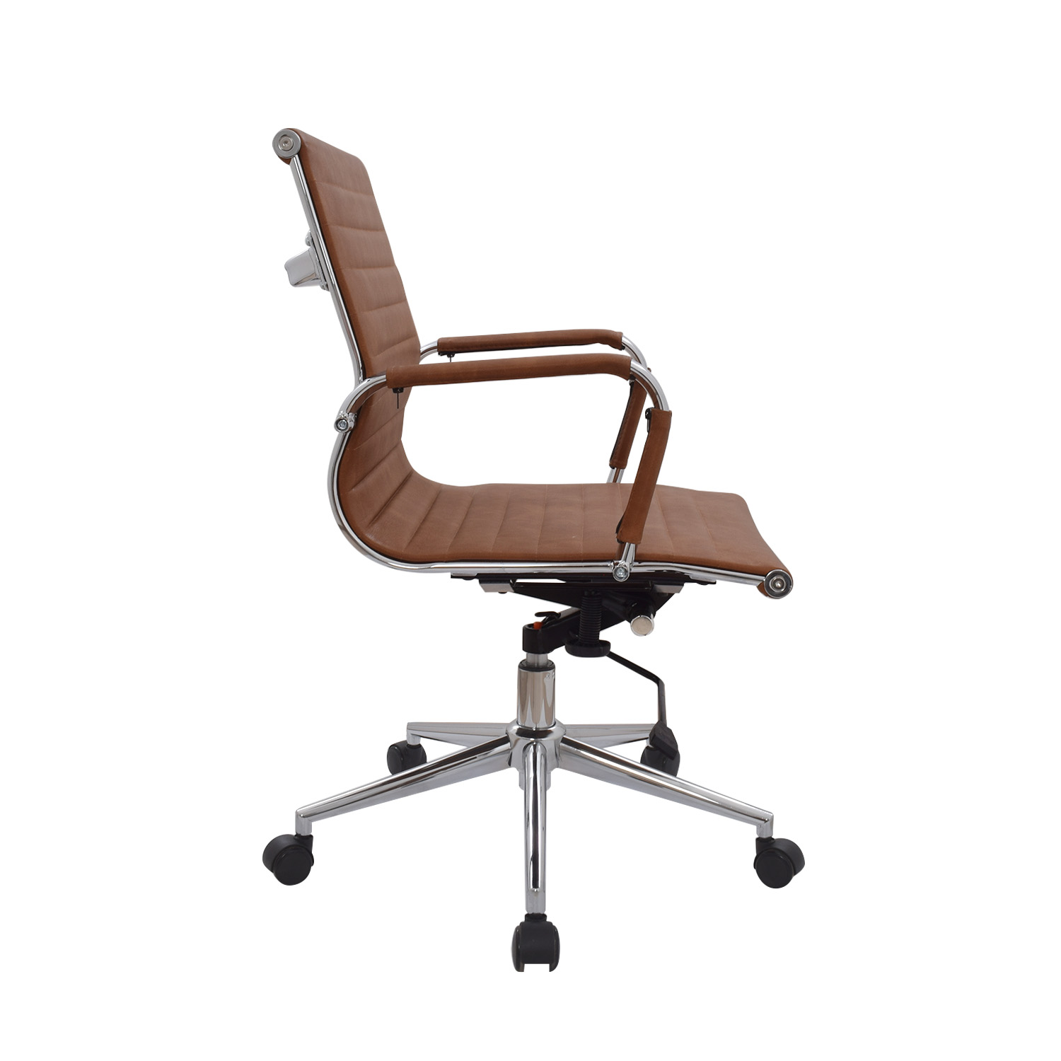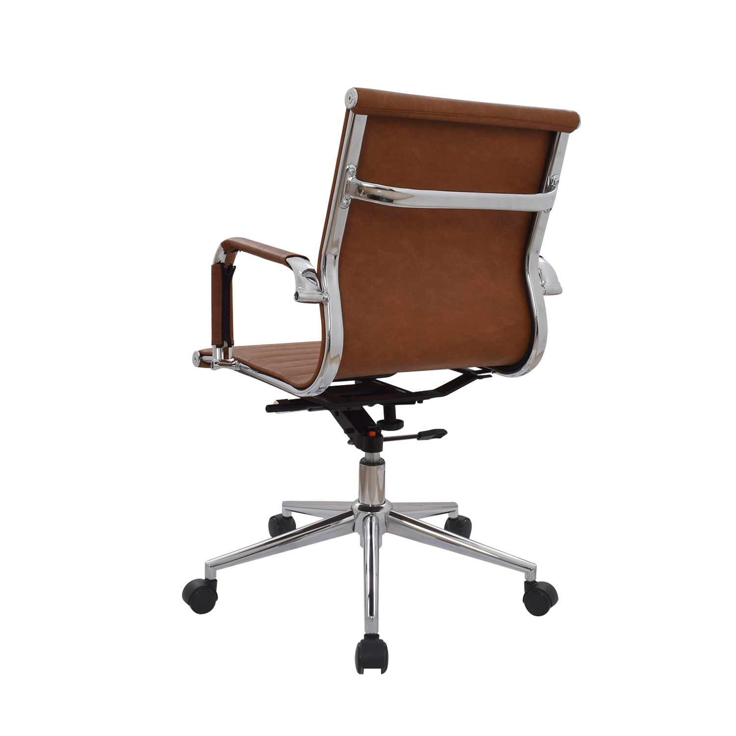 La silla Boss está disponible en versiones con espaldar medio o alto. Su espaldar y asiento están tapizados en cuero sintético, complementados por un marco cromado que realza su apariencia profesional. Los brazos cromados fijos con cobertor en cuero sintético añaden confort y elegancia. Incluye un mecanismo basculante con 1 posición de bloqueo y perilla de tensión, además de una base cromada de 320 mm y ruedas de goma para un desplazamiento fluido.
