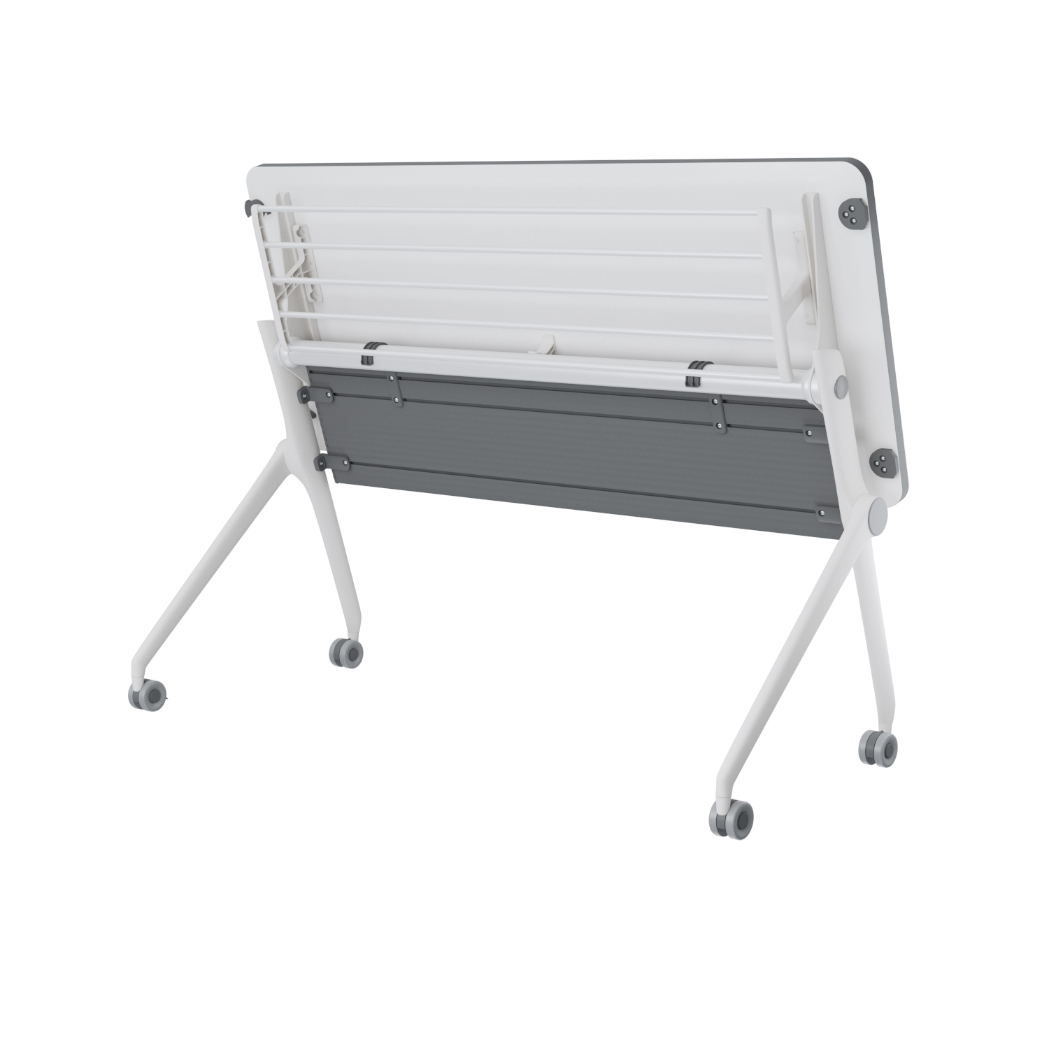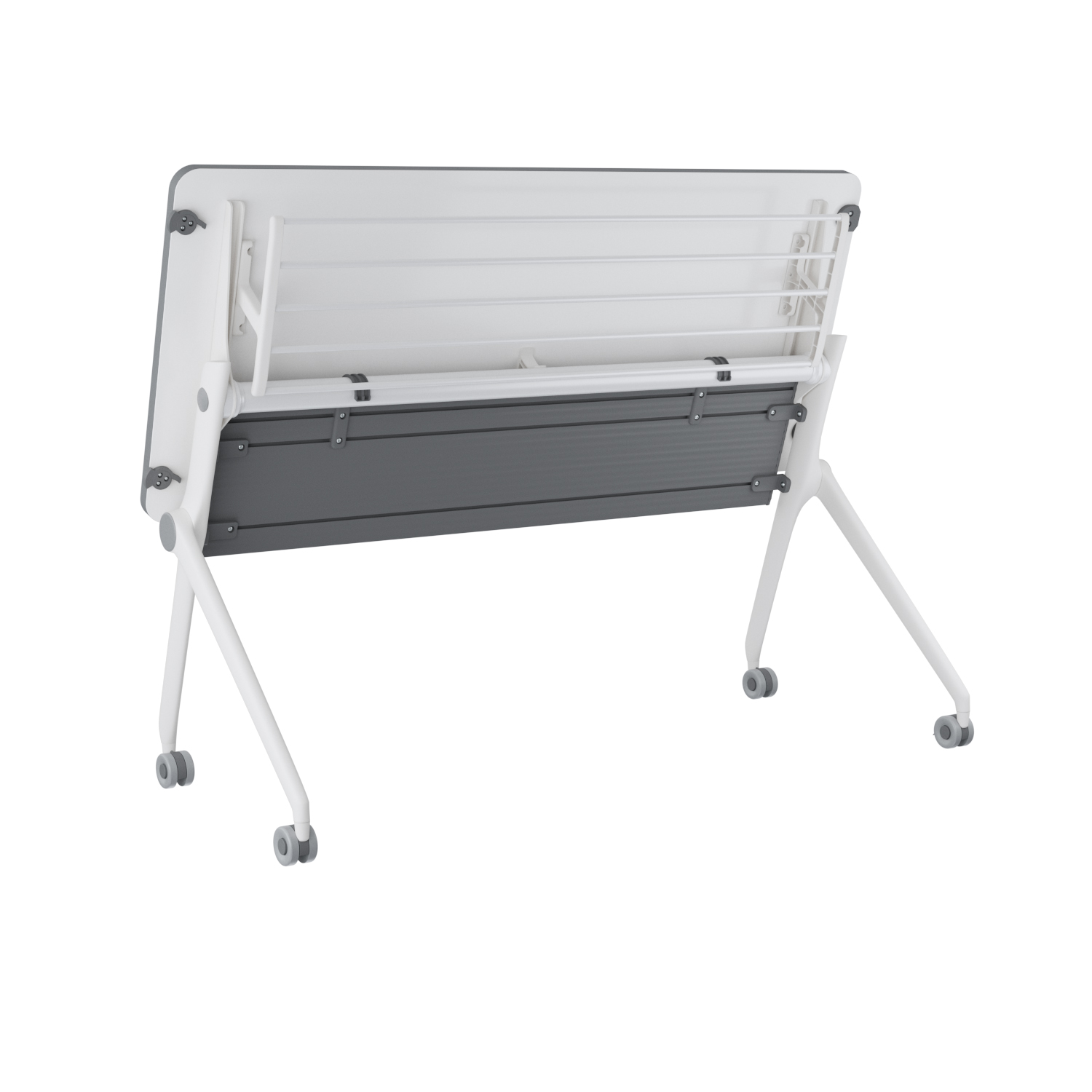 Cubierta abatible que permite plegar la mesa para almacenarla o transportarla con facilidad.