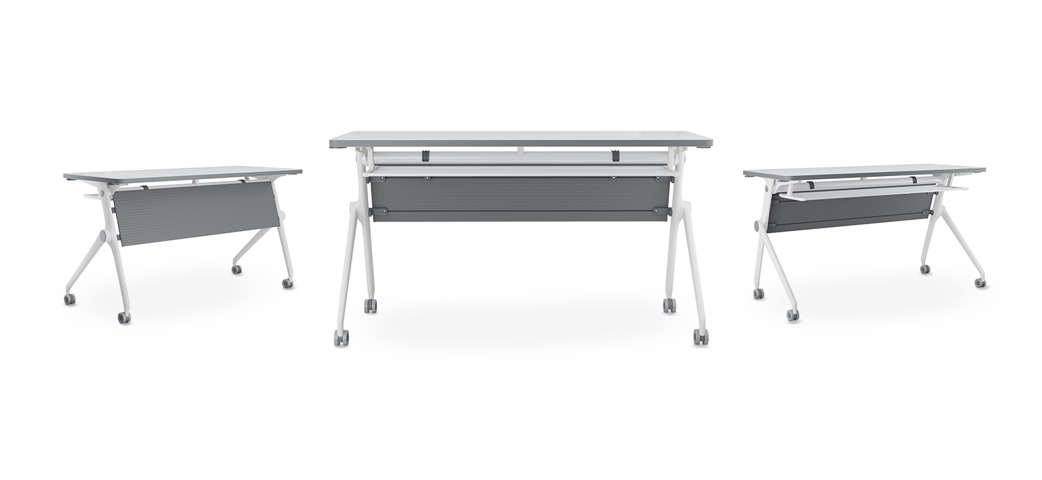 Una mesa móvil y modular que facilita la organización flexible de espacios.