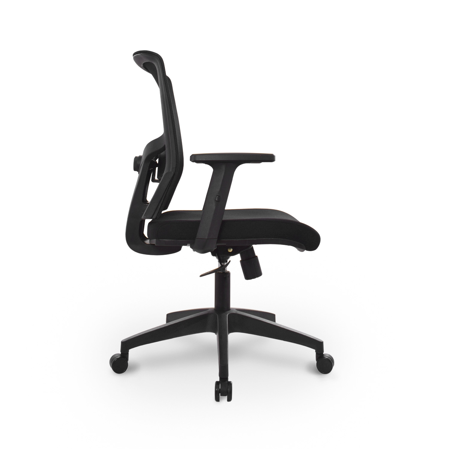 La silla Delphi I cuenta con la opción de cabecero en malla regulable en altura y ángulo, espaldar en malla con apoyo lumbar regulable en altura y profundidad, y brazos regulables en altura o 3D con PAD en polipropileno que brindan un soporte adicional. Su asiento, fabricado en espuma laminada y tapizado en textil, asegura confort prolongado. Integra un mecanismo syncro 4 bloqueos o basculante con perilla de tensión, base de 320 mm y ruedas de goma para un desplazamiento estable.
