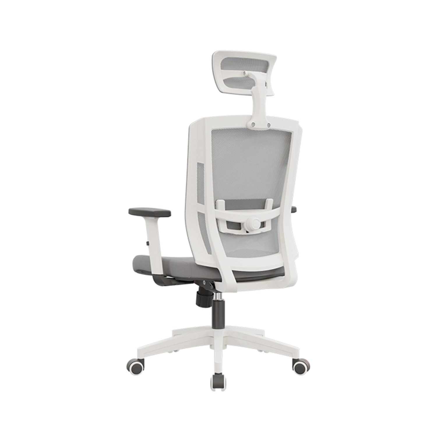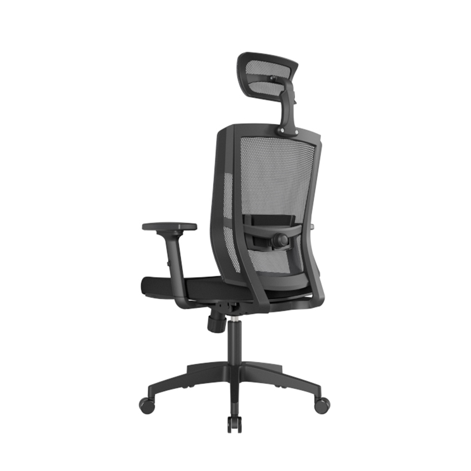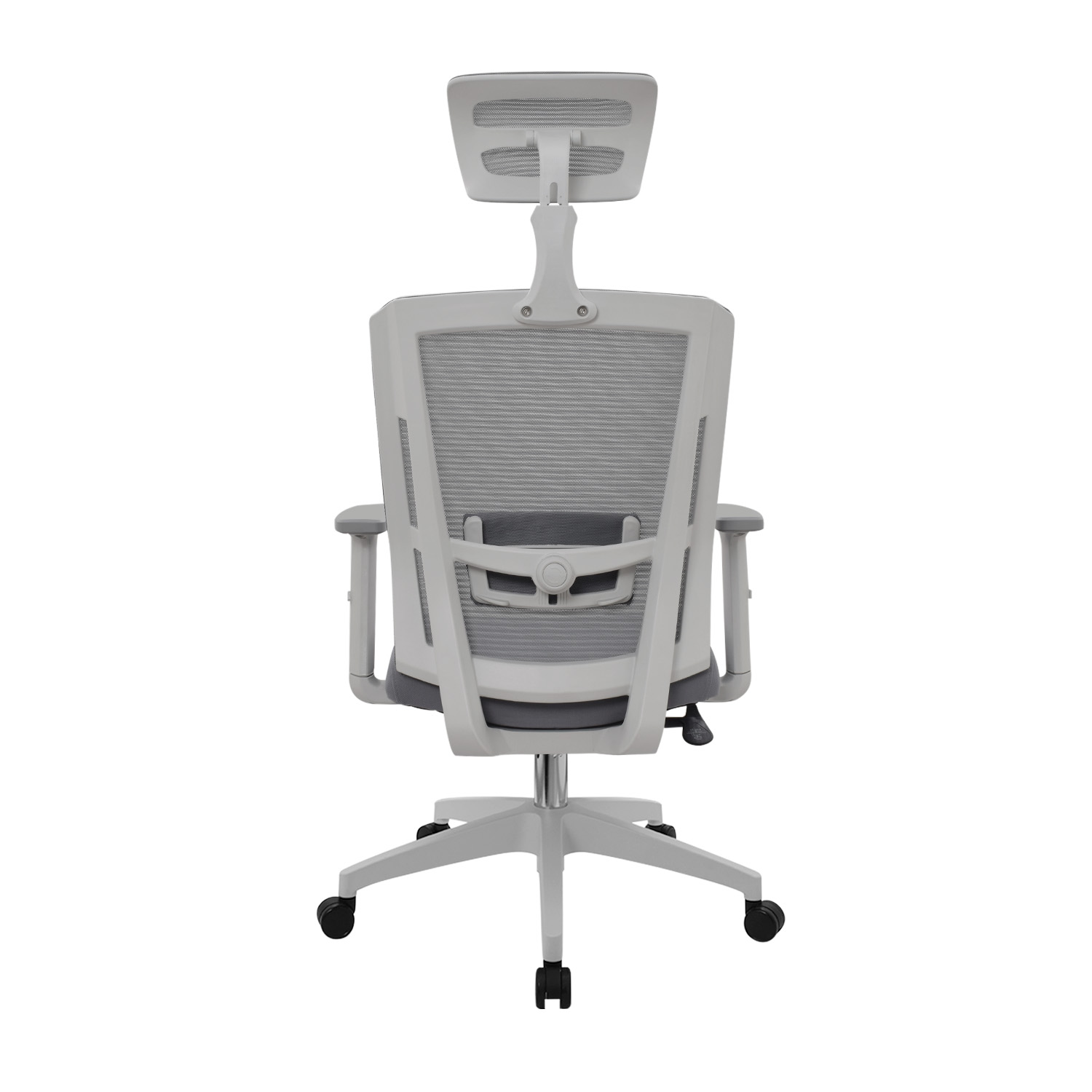 Cabecero en malla regulable en altura y ángulo para un ajuste personalizado y confort ergonómico.
