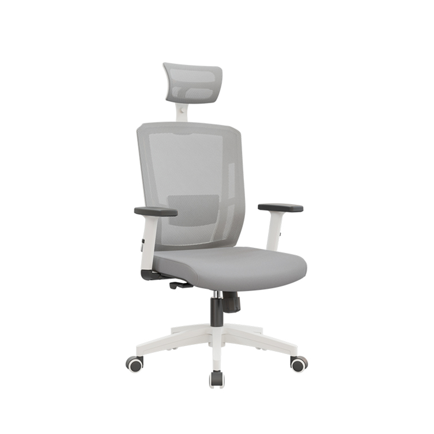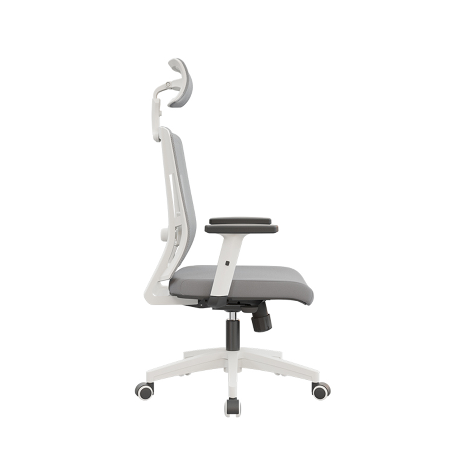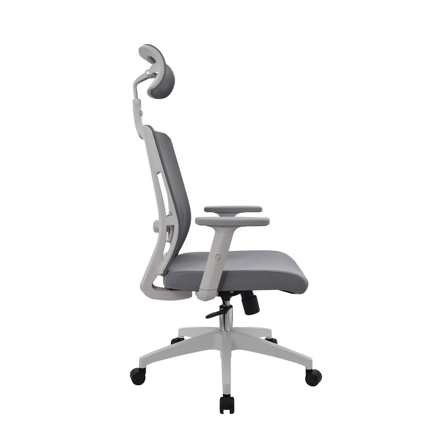 Cabecero en malla regulable en altura y ángulo para un ajuste personalizado y confort ergonómico.