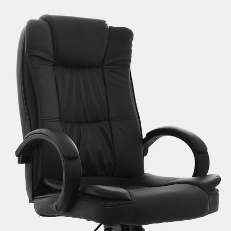 La silla Lexus HM cuenta con espaldar alto y asiento en espuma laminada, ambos tapizados en cuero sintético, diseñada para comodidad y durabilidad. Incluye brazos fijos con estructura en polipropileno tapizados en cuero sintetico, mecanismo basculante con 1 posición de bloqueo, y perilla de tensión para ajustes personalizados. Su base cromada de 320 mm y ruedas de goma completan su diseño práctico y elegante.