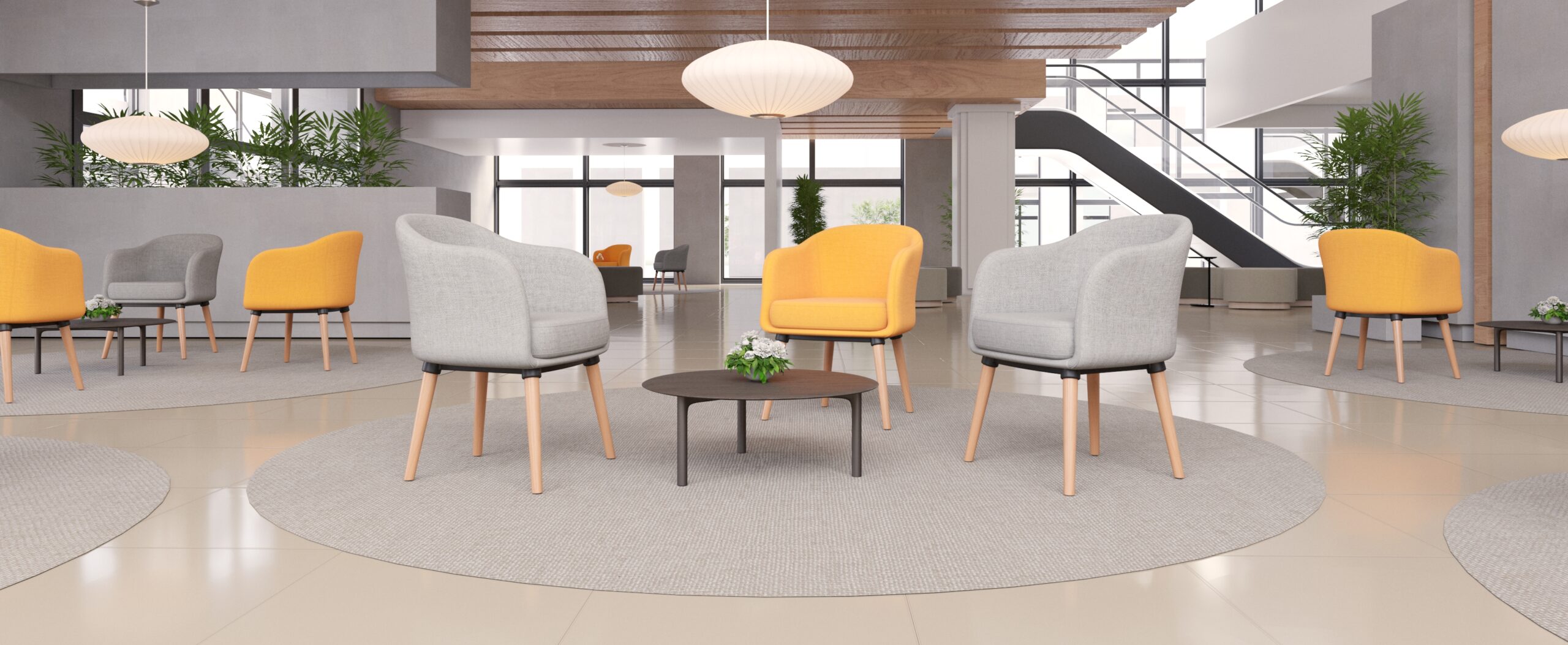 La poltrona Lia destaca por su diseño limpio y su estructura resistente, ideal para entornos modernos.