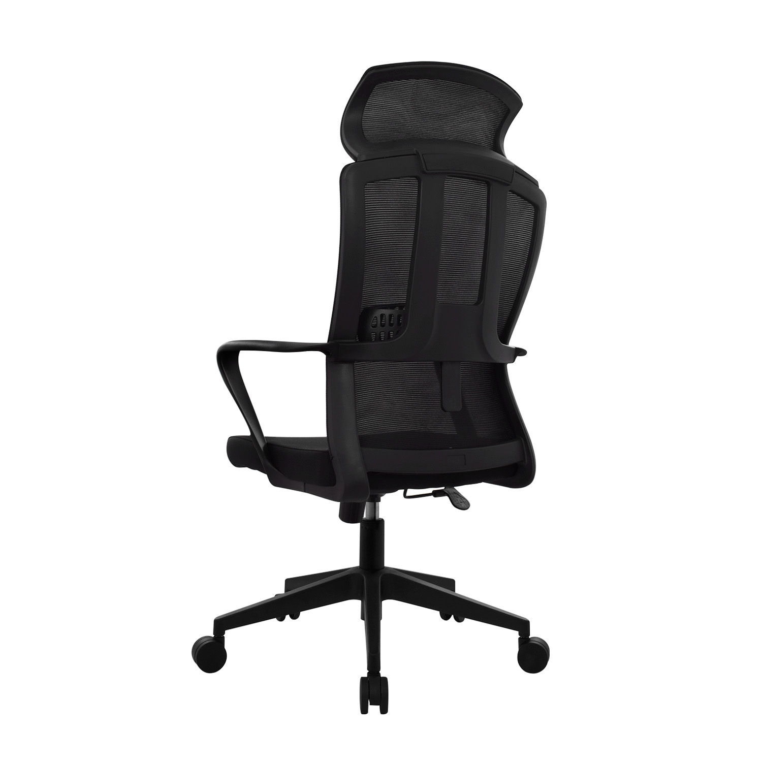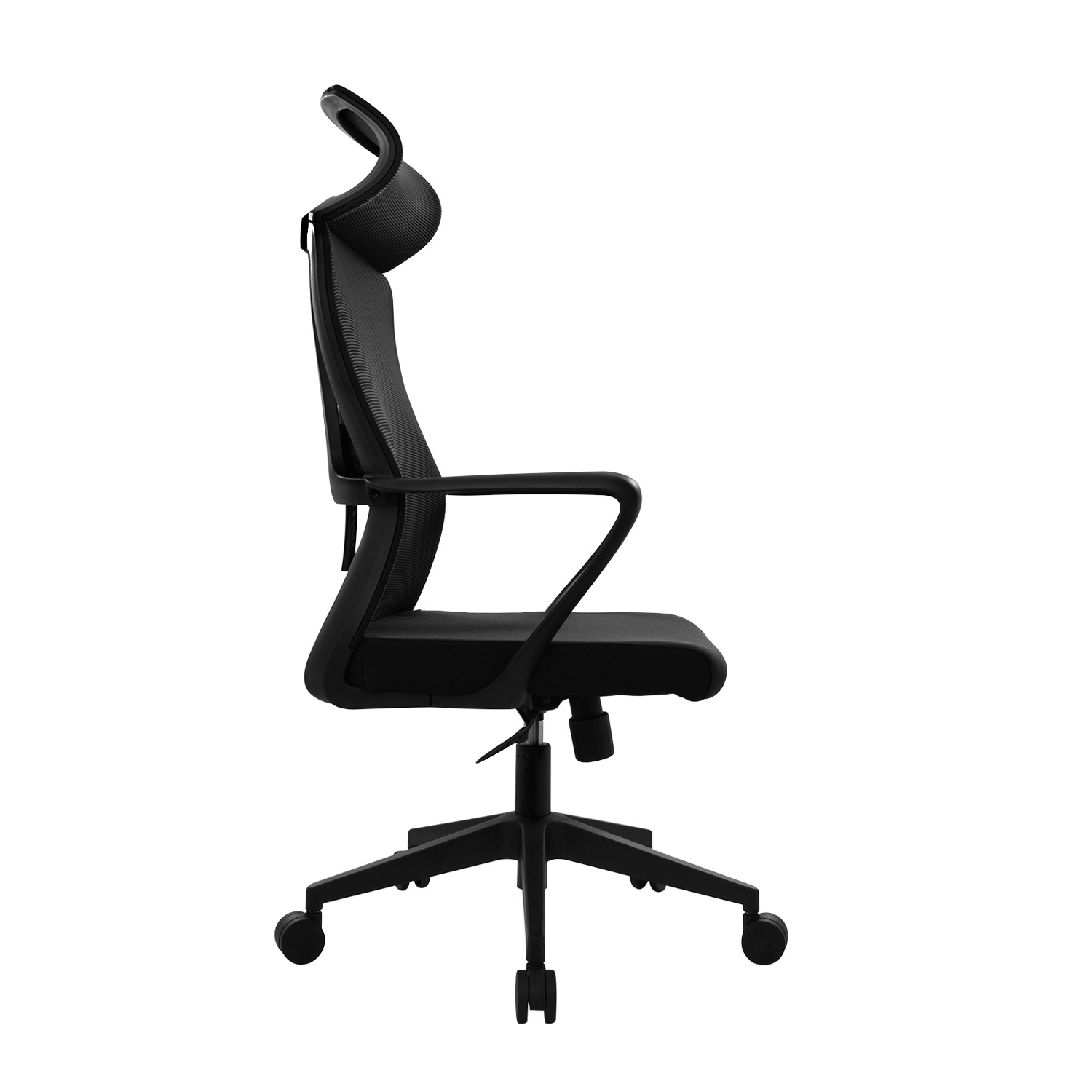 La silla Max cuenta con un cabecero en malla fijo, complementado por un espaldar en malla con apoyo lumbar en polipropileno regulable en altura. Los brazos fijos en polipropileno y el asiento de espuma laminada con tapizado textil aseguran una experiencia cómoda. Su mecanismo basculante 1 bloqueo con perilla de tensión, base de nylon de 320 mm y ruedas de nylon hacen de este modelo una solución práctica.