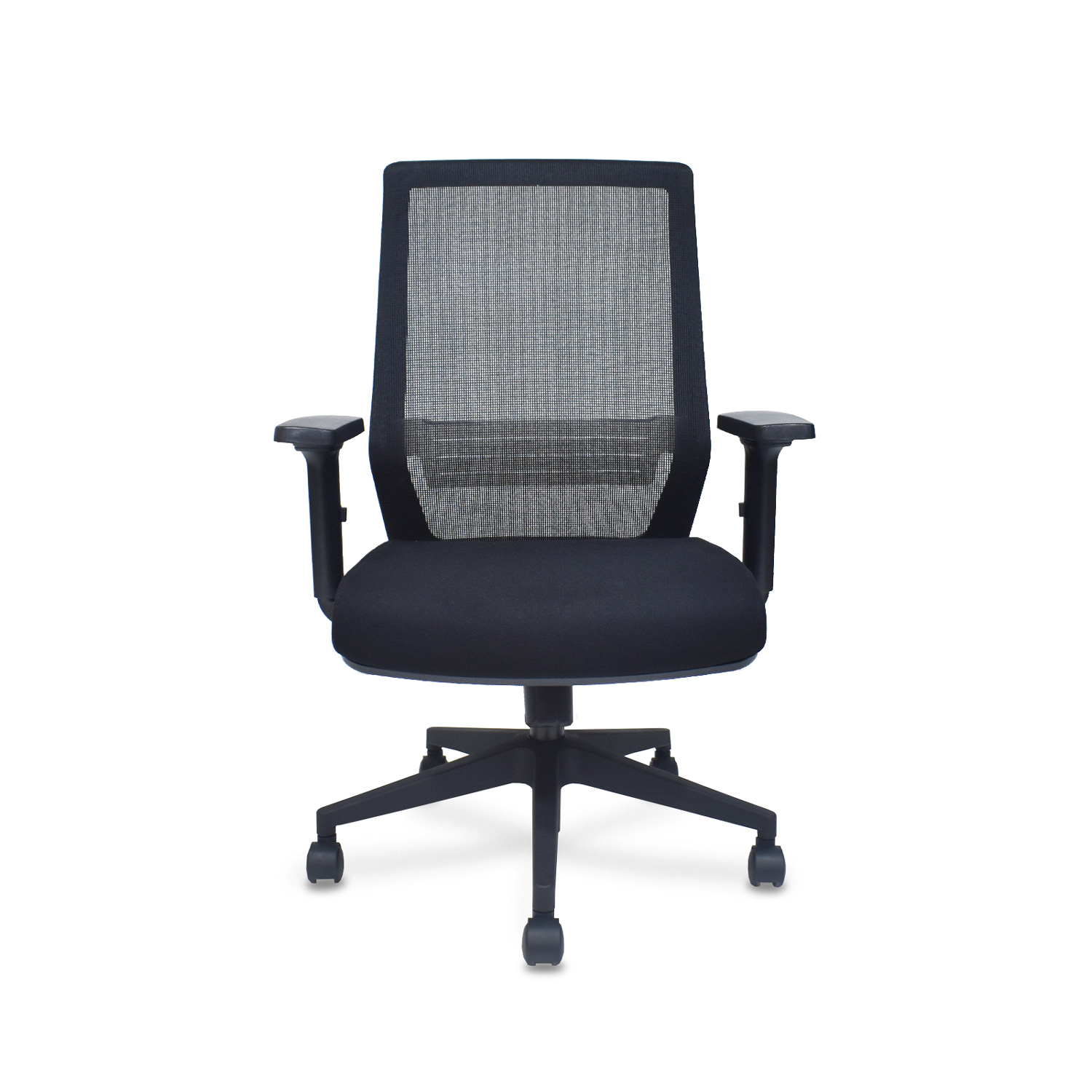La silla Musk cuenta con un diseño ergonómico para mayor confort, su espaldar en malla y apoyo lumbar que proporciona un soporte adecuado. El asiento está tapizado en textil importado para un acabado cómodo y duradero. Los brazos son regulables en altura, y su mecanismo syncro asegura ajustes ergonómicos. Incluye una base de nylon resistente y ruedas de 50 mm para un desplazamiento fluido.