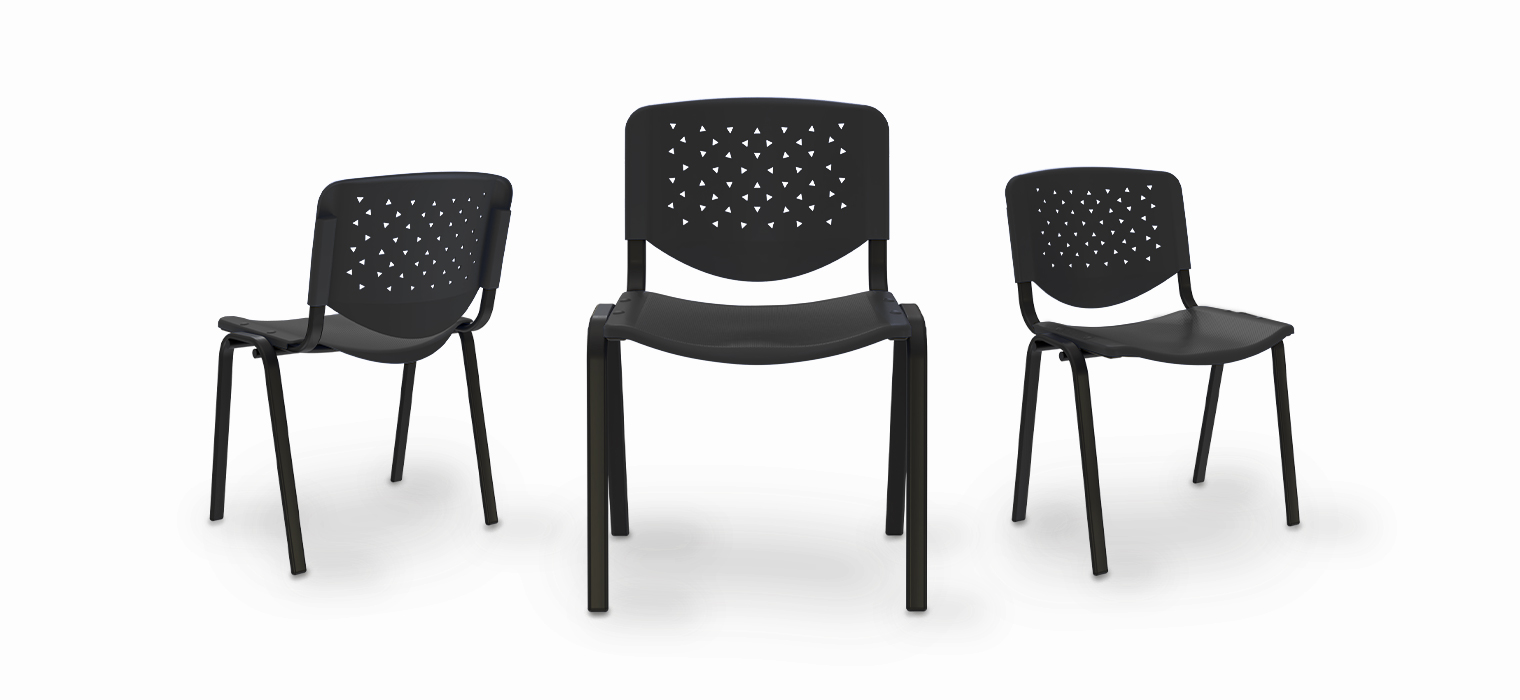 La silla Prisma es moderna con espaldar de polipropileno con microperforaciones triangulares que mejoran la ventilación, y asiento liso en polipropileno, con opción de tapizado para mayor confort. Apilable para optimizar el espacio, Prisma está disponible en múltiples configuraciones: estructura de cuatro patas cromada o con pintura electrostática negra o gris, base giratoria en nylon o cromada, y versiones para cajero con aro cromado o de nylon. Es ideal para oficinas, auditorios y espacios colaborativos.
