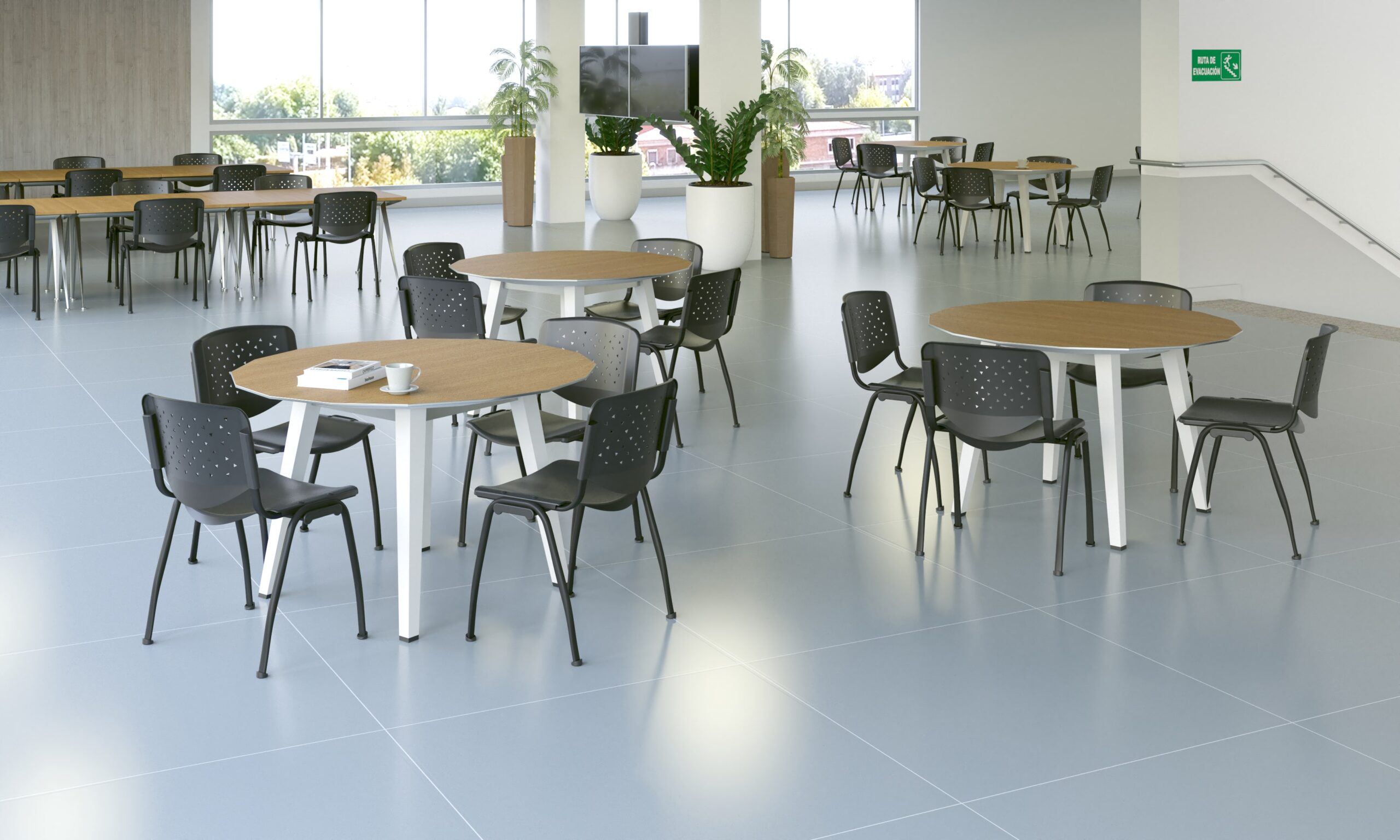 La silla Prisma destaca por su diseño apilable, opciones de tapizado y configuraciones que maximizan su funcionalidad.