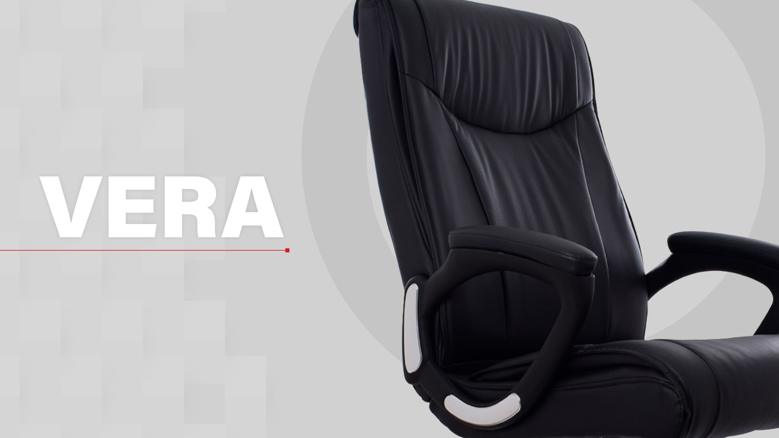 La silla Vera cuenta con un diseño resistente y elegante, con espaldar alto y asiento en espuma eco, ambos tapizados en cuero sintético para una apariencia sofisticada. Los brazos fijos con estructura de polipropileno están tapizados para mayor comodidad. Incorpora un mecanismo basculante con 1 posición de bloqueo y perilla de tensión, además de una base cromada de 350 mm y ruedas de nylon de que complementan su diseño elegante y funcional.