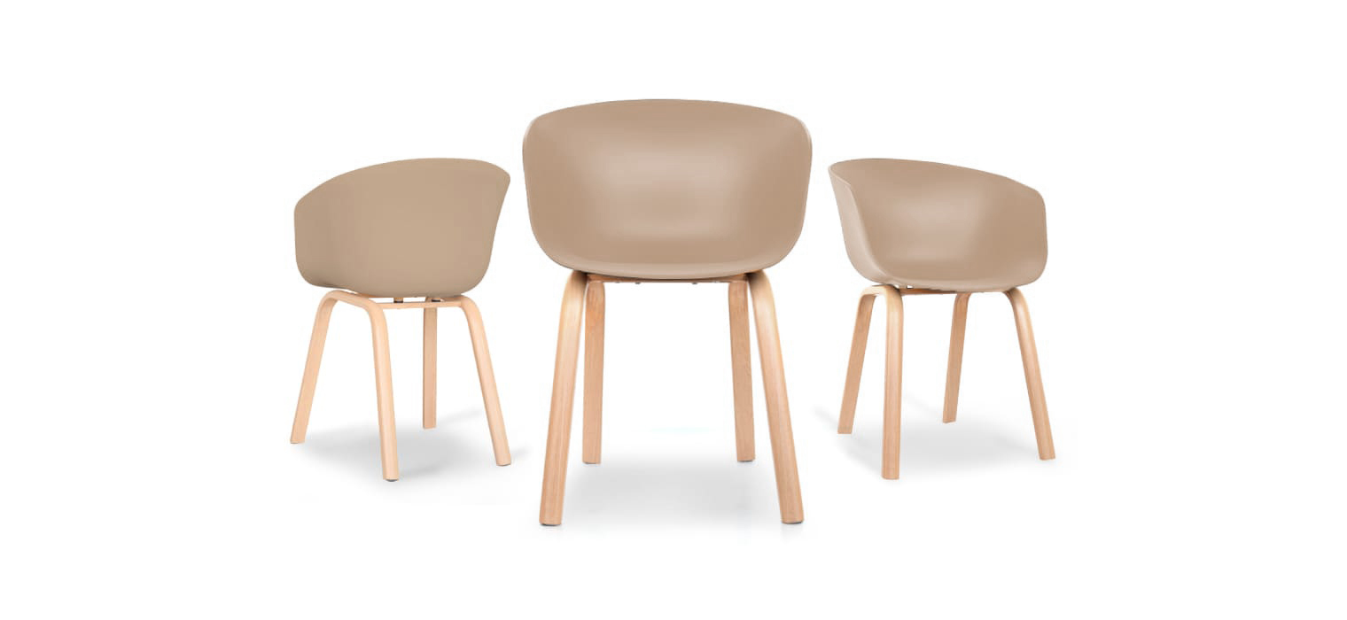 La poltrona Volga es una monoconcha de polipropileno disponible con o sin tapiz interno, diseñada para adaptarse a diferentes necesidades. Sus configuraciones incluyen estructuras metálicas de cuatro patas termolaminadas con efecto madera, o bases piramidales con ruedas para mayor movilidad. Las combinaciones permiten monoconcha tapizada o sin tapizar, adaptándose a entornos corporativos, residenciales o de colaboración.