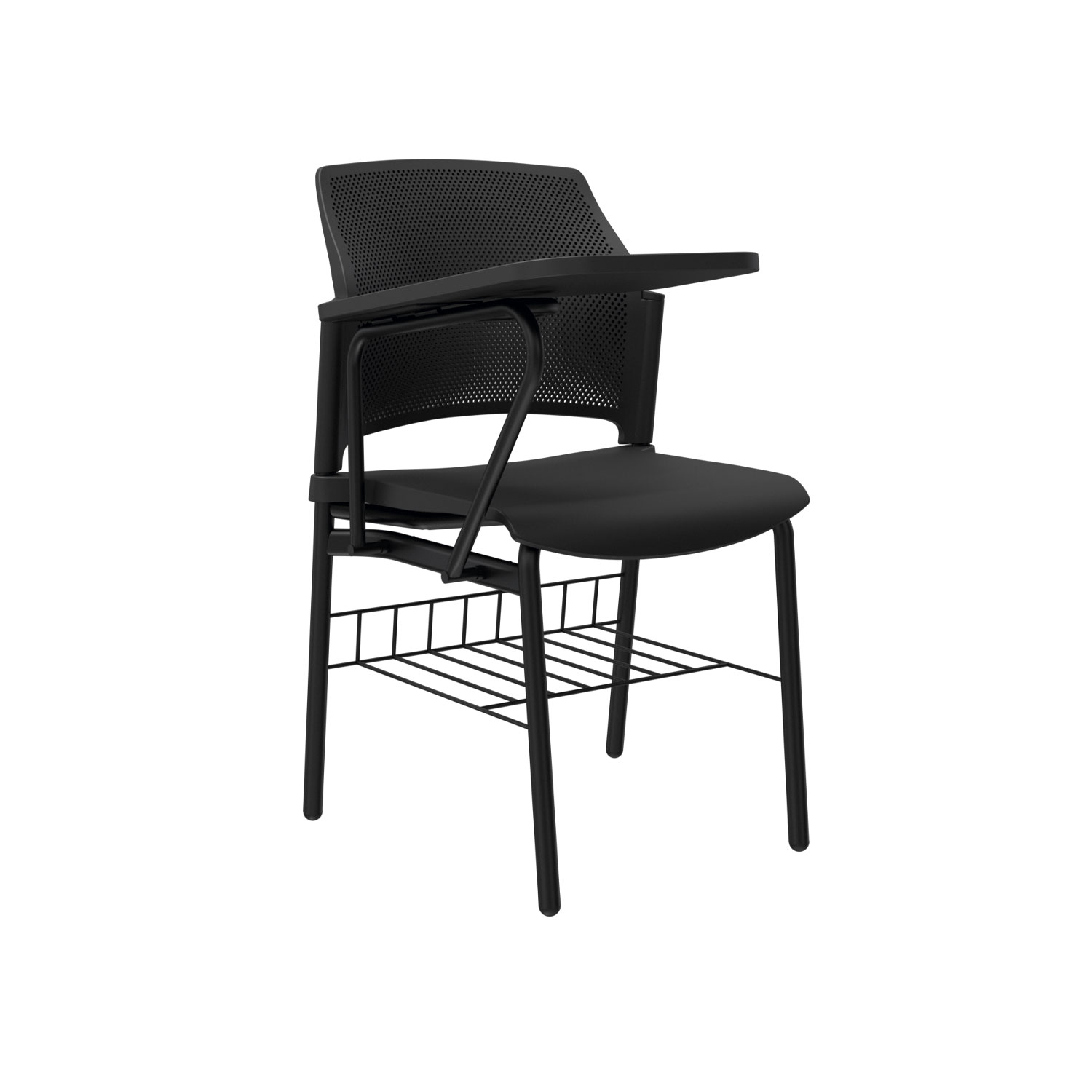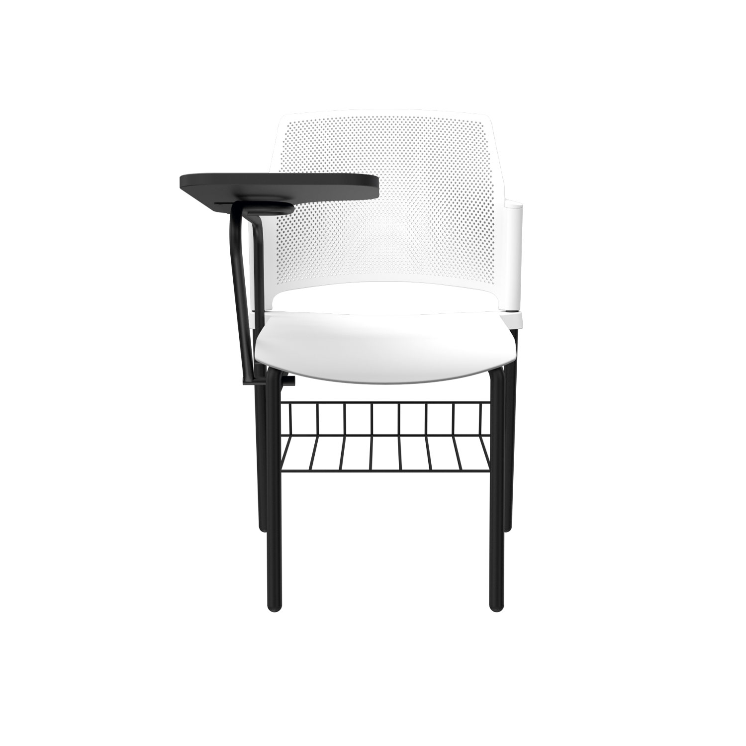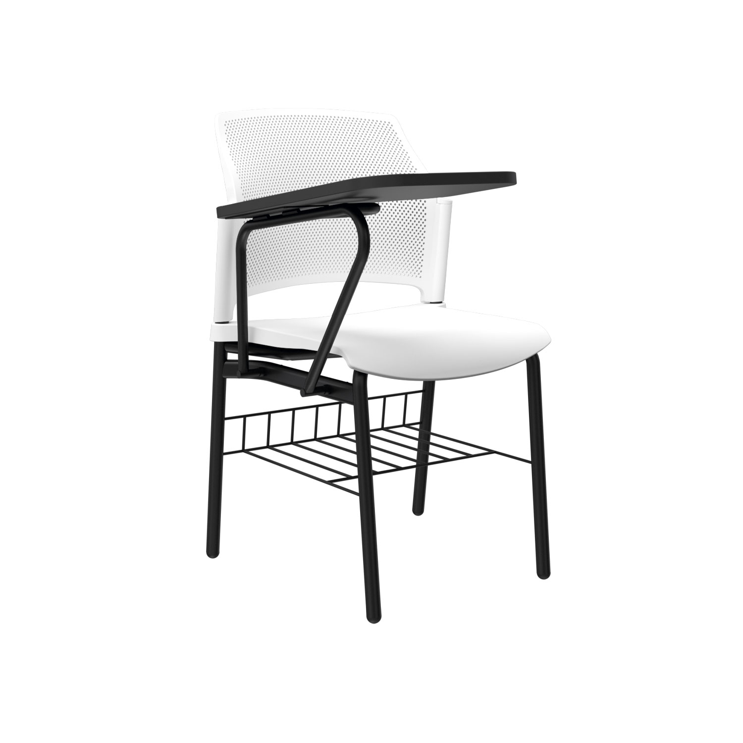 La silla Zyle Universitaria cuenta con espaldar microperforado en polipropileno para una ventilación óptima, estructura metálica de brazos con tablero fijo o abatible en melamina, disponible en versiones diestras o zurdas. Asiento tipo cascada en polipropileno liso, con opción de tapizado en el asiento para mayor confort. Estructura de 4 patas con pintura electrostática, ofreciendo resistencia y durabilidad.