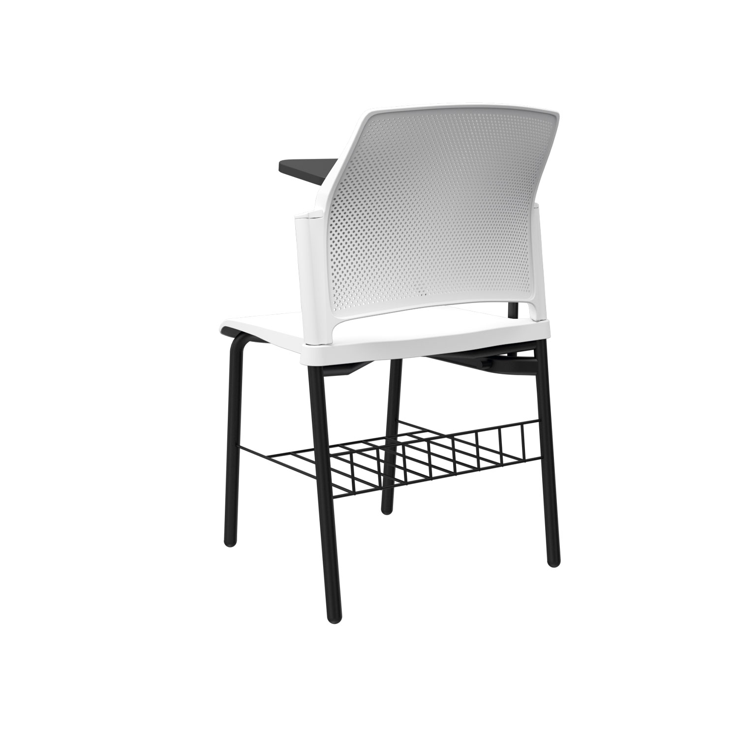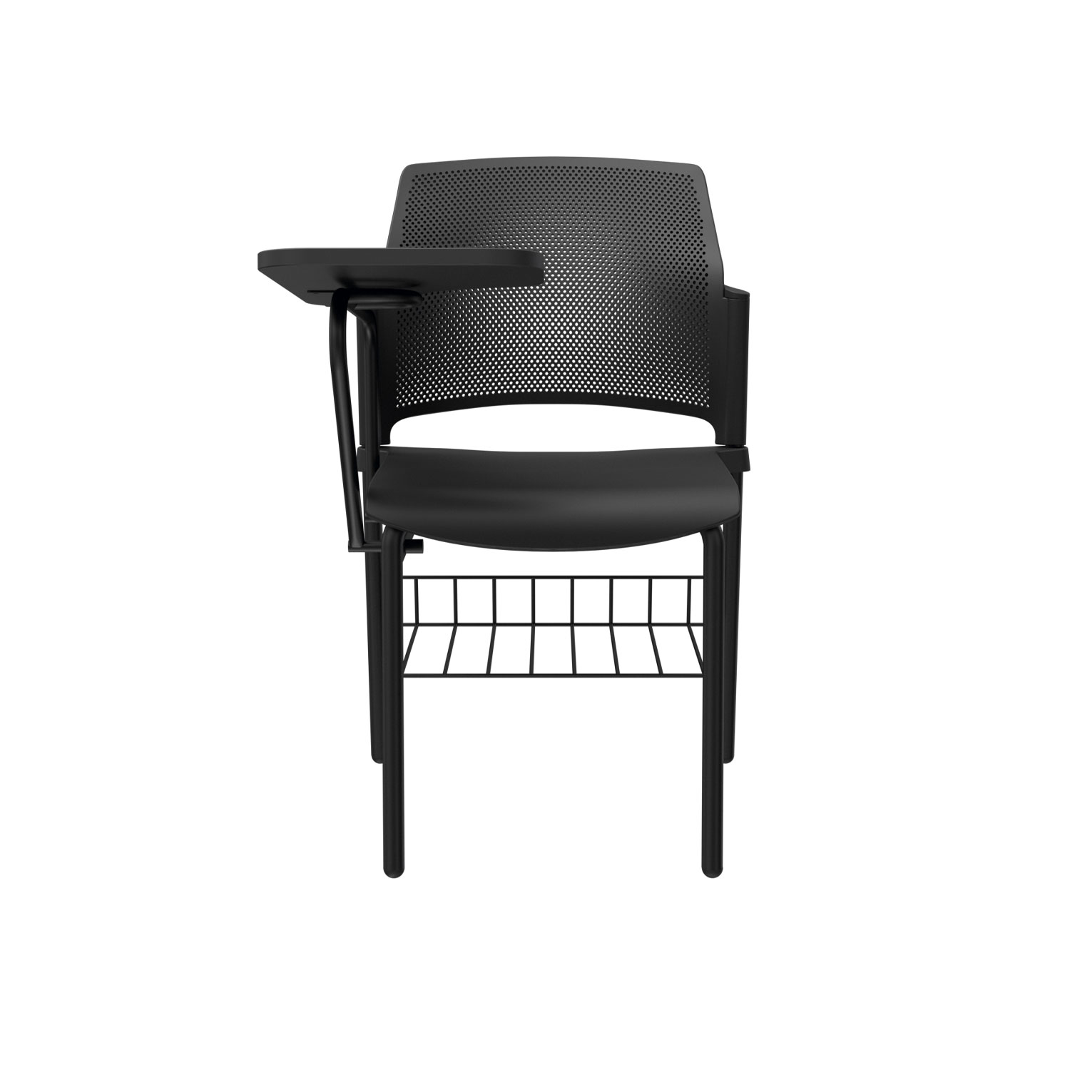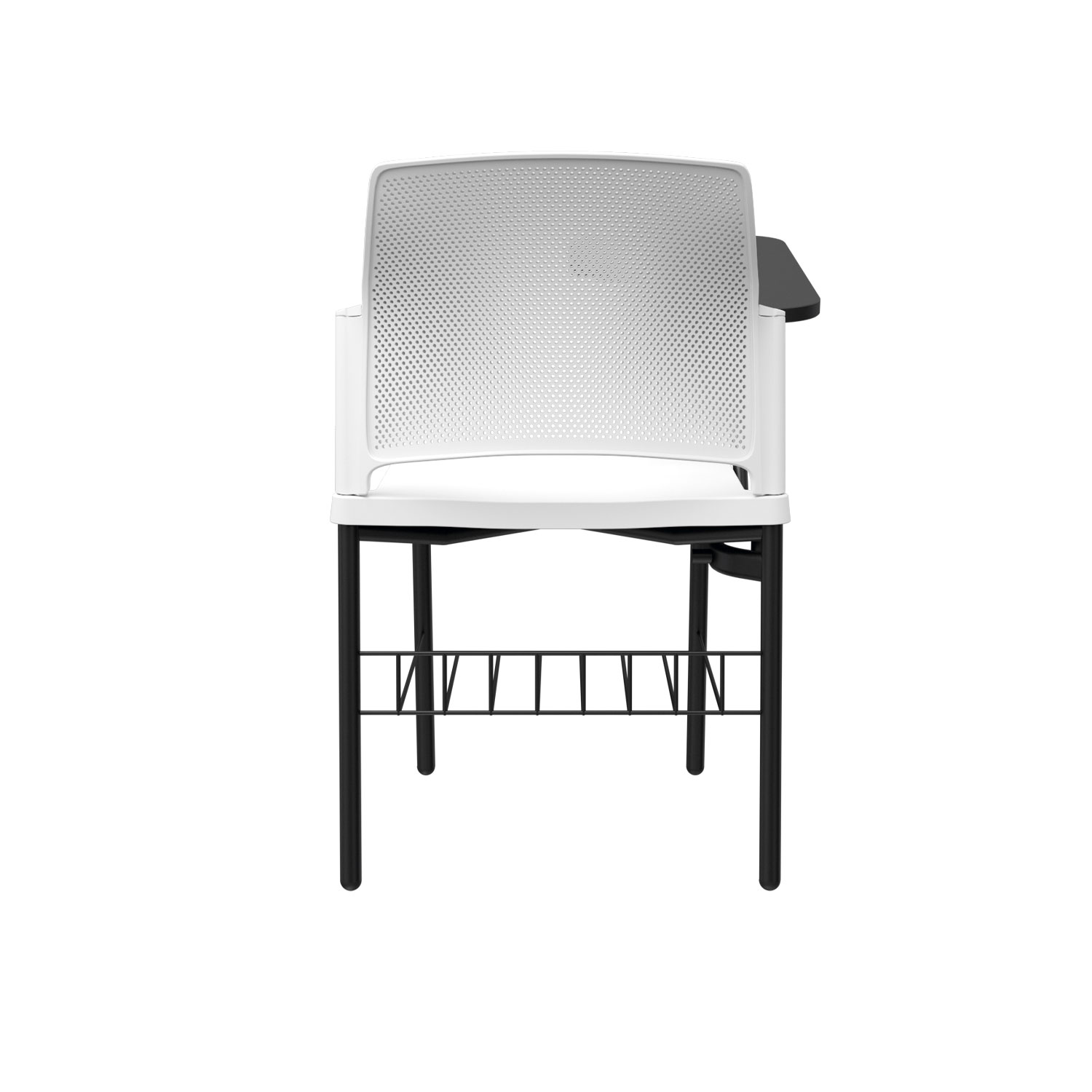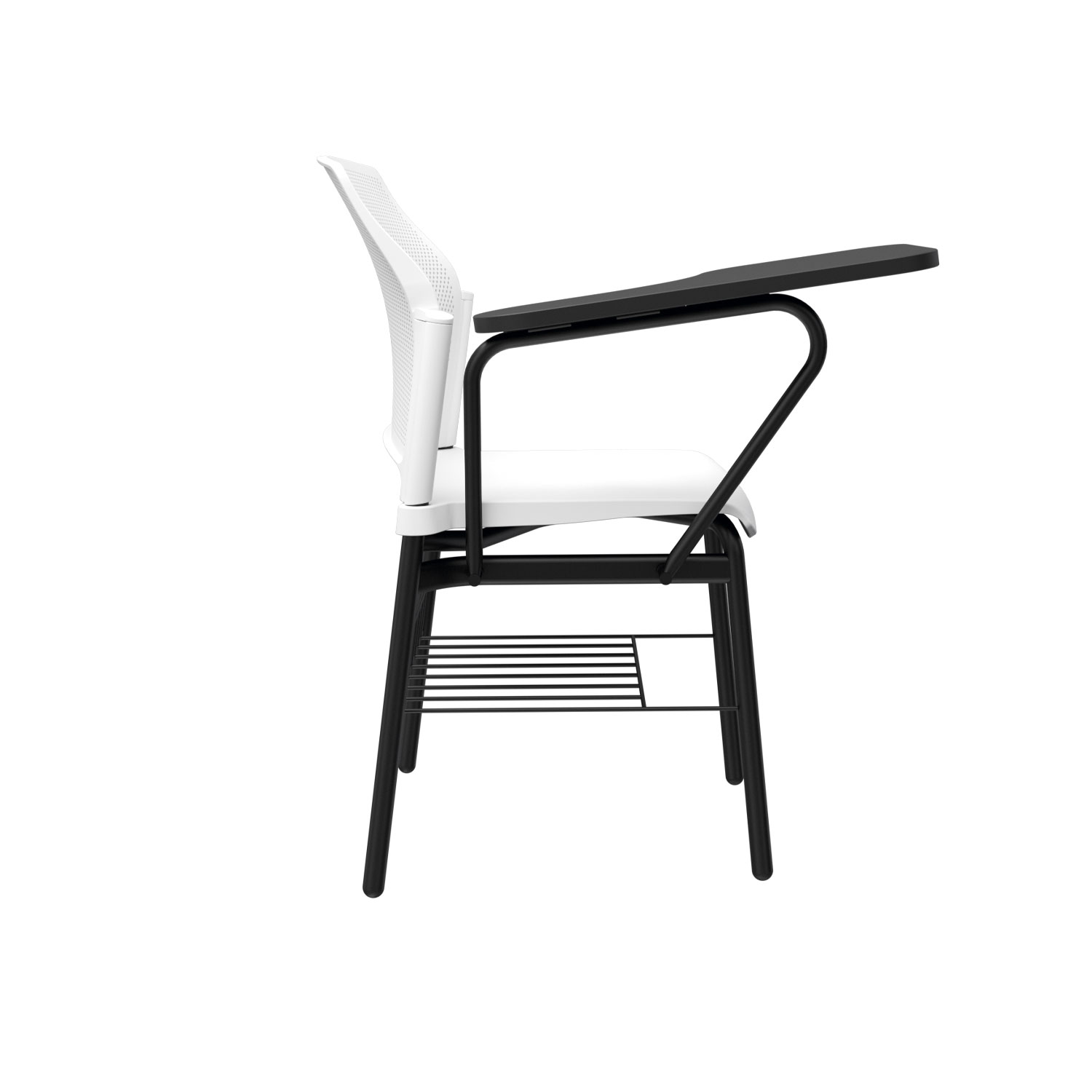 La silla Zyle Universitaria cuenta con espaldar microperforado en polipropileno para una ventilación óptima, estructura metálica de brazos con tablero fijo o abatible en melamina, disponible en versiones diestras o zurdas. Asiento tipo cascada en polipropileno liso, con opción de tapizado en el asiento para mayor confort. Estructura de 4 patas con pintura electrostática, ofreciendo resistencia y durabilidad.